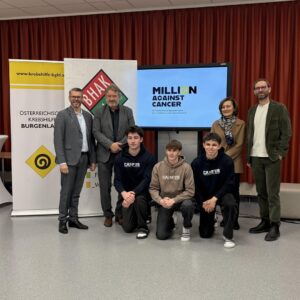 Heute gab es an unserer Schule eine Pressekonferenz zu unserem Schulprojekt „Million against cancer“ mit Bildungsdirektor Alfred Lehner. Wir unterstützen dabei die Krebshilfe Burgenland mit einem Webprojekt, welches Prof. Zartl